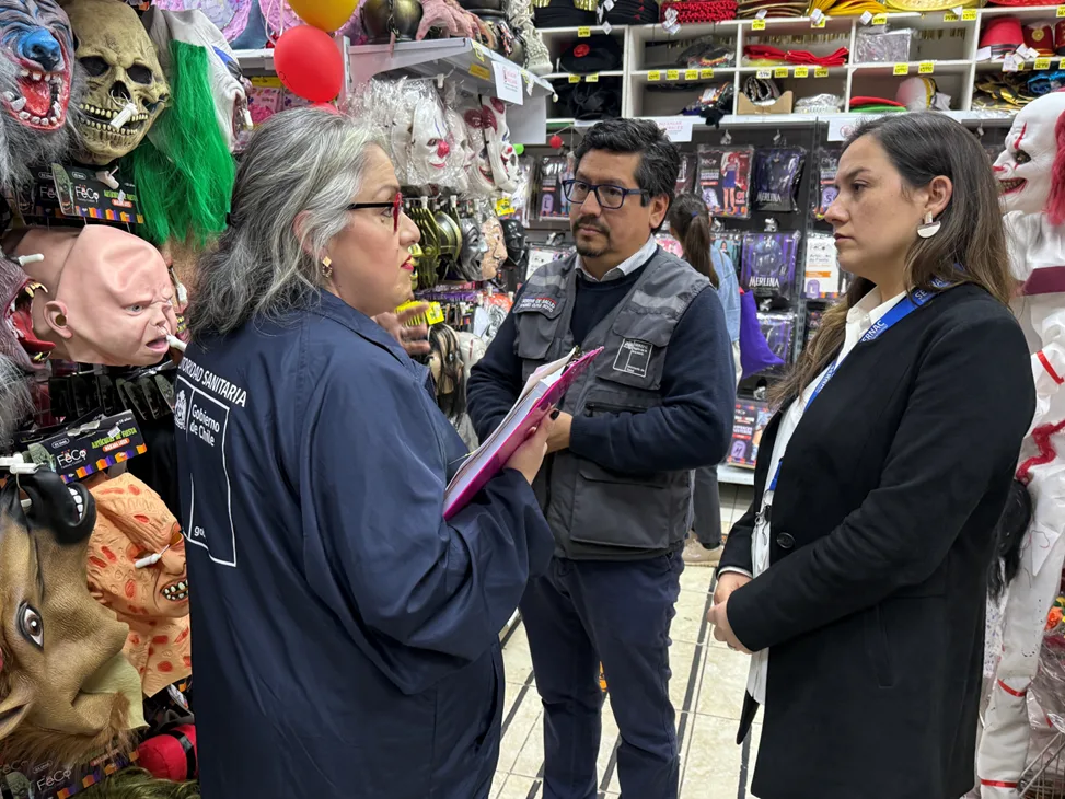 Con el objetivo de prevenir accidentes y garantizar la seguridad de los consumidores, el Seremi de Salud de La Araucanía, Andrés Cuyul, junto a la directora regional del Sernac, Marissa Brieba, encabezaron una fiscalización en un céntrico local de Temuco, en el marco de las celebraciones de Halloween.