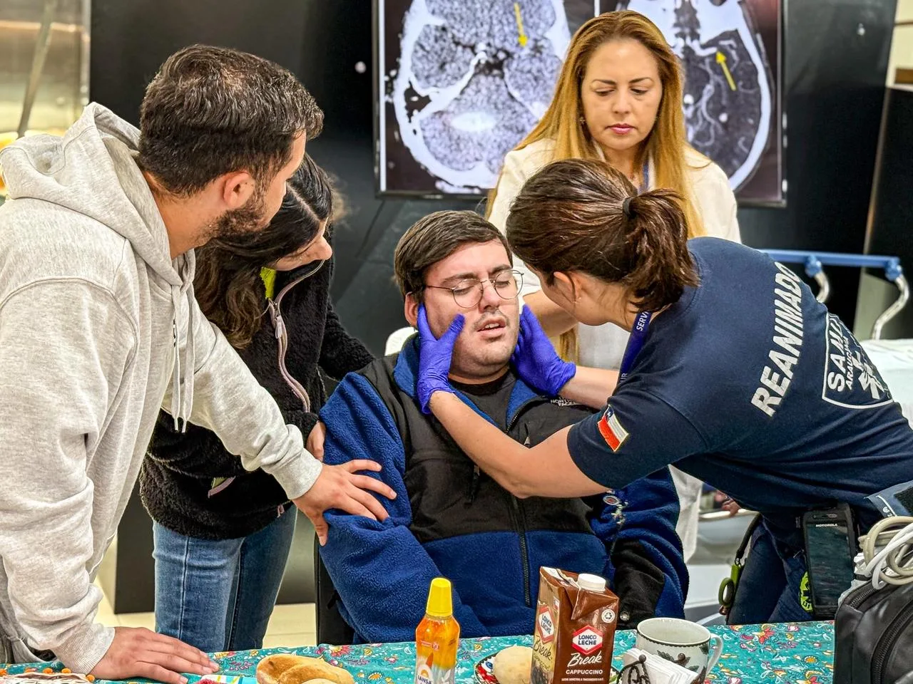 La actividad comenzó con una familia disfrutando del desayuno cuando un adulto mayor de 70 años, hipertenso, sufrió un ACV. Ante la incertidumbre de la situación, los familiares actuaron de inmediato y llamaron al SAMU, lo que fue clave para la pronta atención. El equipo médico del SAMU, a través de una llamada telefónica, orientó a los familiares sobre cómo proceder mientras se esperaba la llegada de la ambulancia.