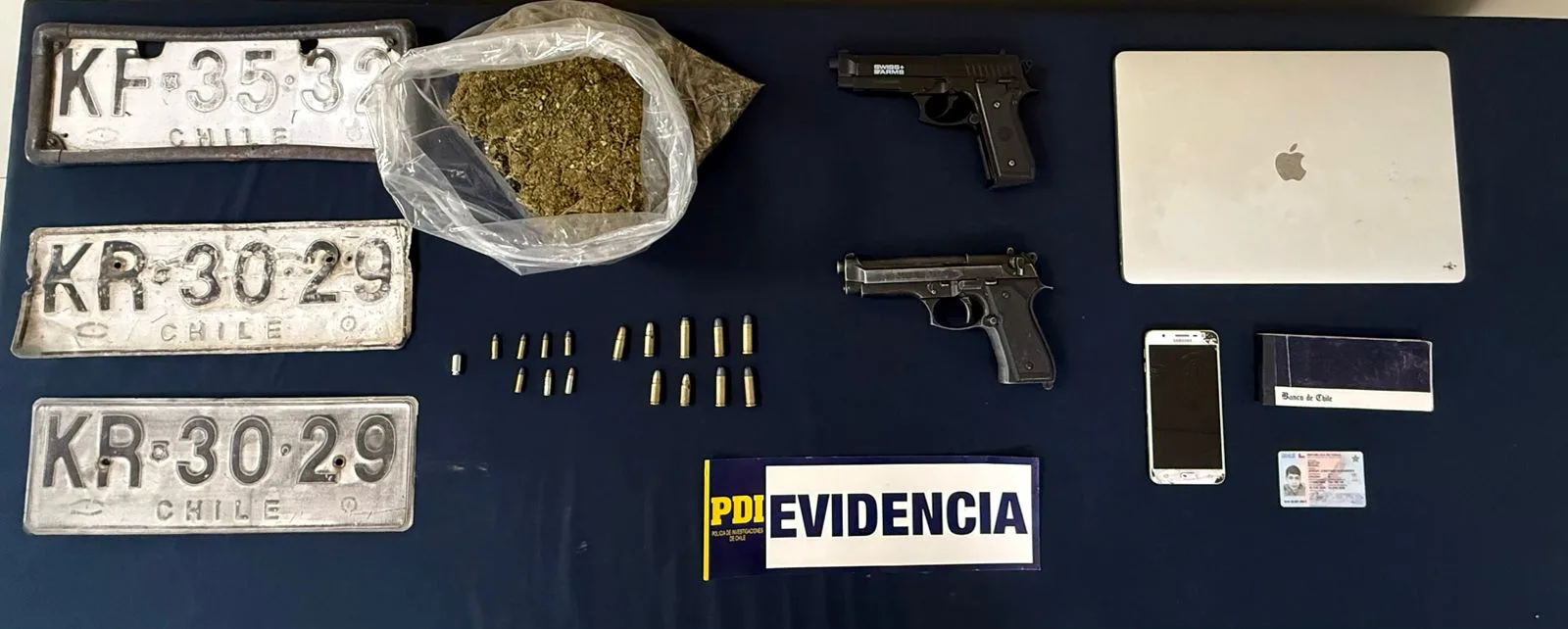 El operativo fue desarrollado por detectives de la Brigada Investigadora de Robos (BIRO) de la PDI en coordinación con el Ministerio Público, permitiendo sacar de circulación vehículos sustraídos, droga y armamento, con un avalúo cercano a los $55 millones.