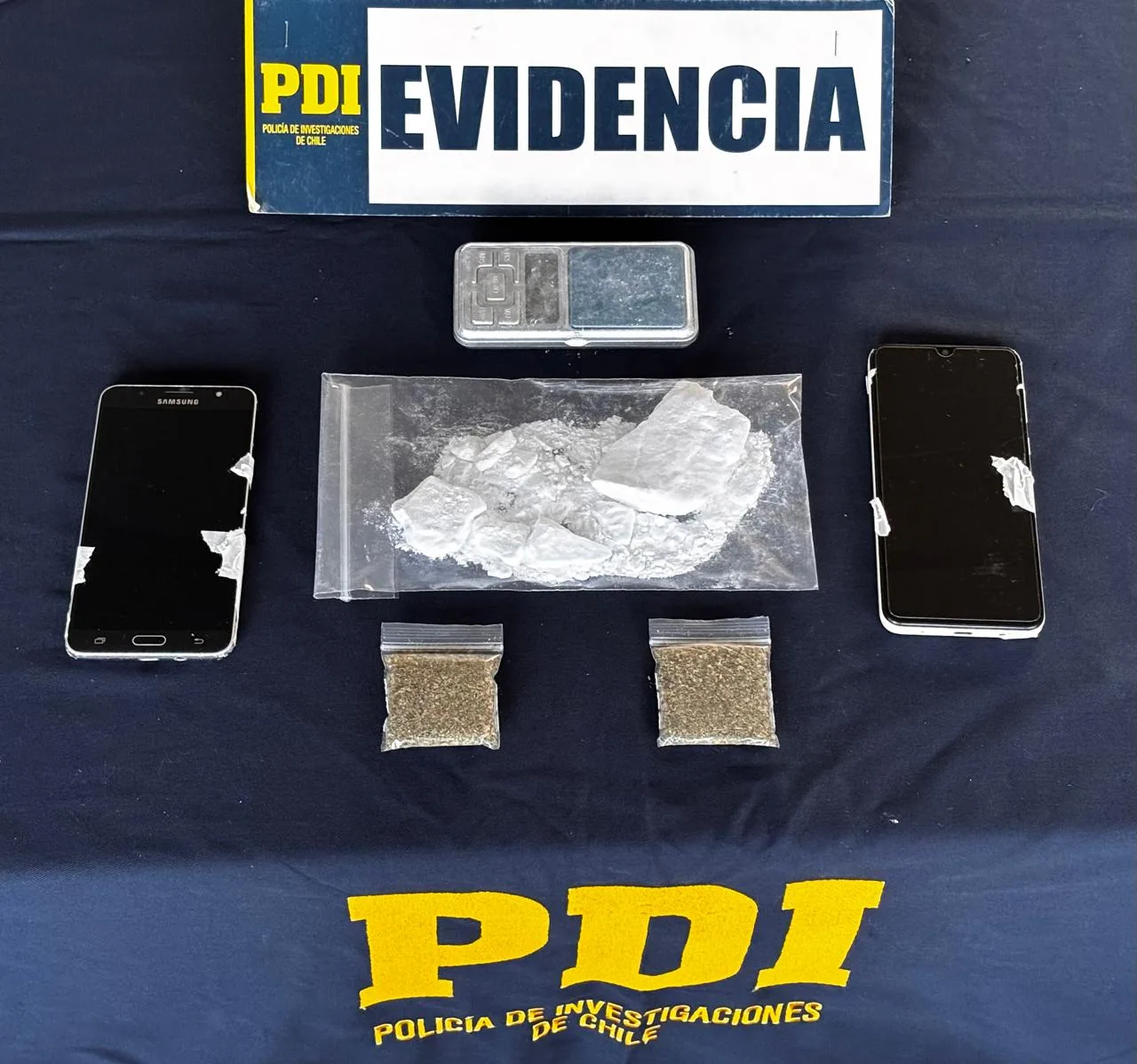 Durante el registro del inmueble, los detectives incautaron 91,10 gramos de una sustancia dubitada como clorhidrato de cocaína y 11,41 gramos de cannabis, además de elementos asociados a la dosificación —como balanzas y envoltorios— y dos teléfonos celulares que serán sometidos a peritajes para determinar posibles redes de distribución.