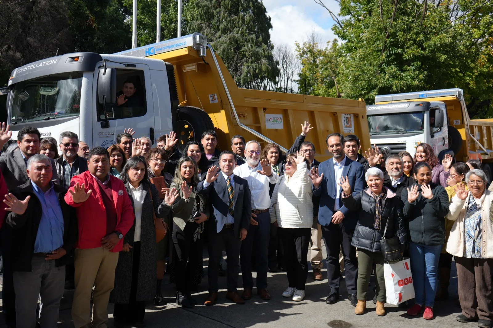 En el marco del proyecto de adquisición y reposición de maquinaria para la mantención de la red vial de la comuna de Cunco, el Gobierno de La Araucanía celebró la entrega oficial de dos camiones tolva de 12 m³, inversión que busca mejorar significativamente la conectividad y las condiciones de tránsito en sectores urbanos y rurales de la comuna.