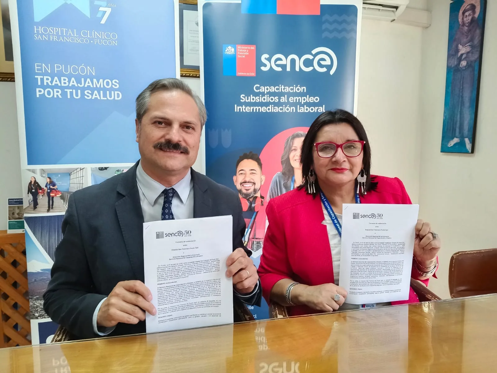 El acuerdo, suscrito por la directora regional del Sence La Araucanía, Minerva Castañeda Meliñán, y el director del Hospital Clínico San Francisco de Pucón, Ricardo Alvear Leal, contempla la coordinación permanente entre ambas entidades para la gestión, difusión y desarrollo de iniciativas como proyectos, programas de capacitación, prácticas laborales y acciones de intermediación laboral.